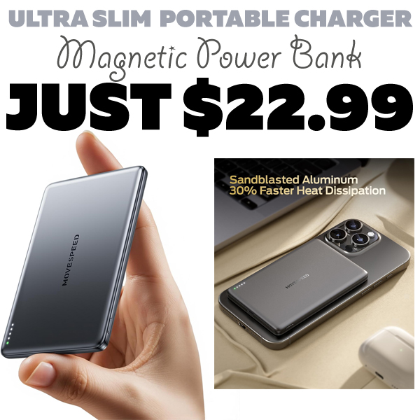 Score this Magnetic Power Bank Only $22.99 (Regularly $28.99) when you use promo code MS4TZIQP at checkout.