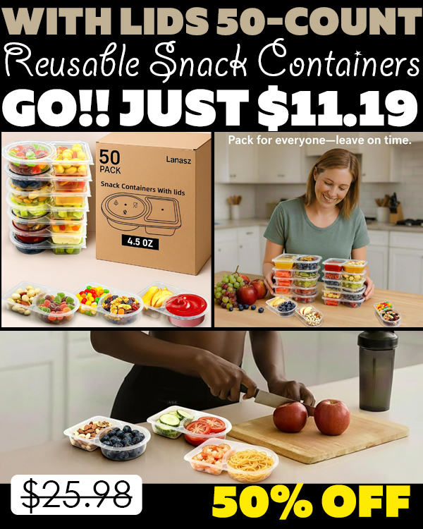 Reusable Snack Containers w/ Lids 50-Count Only $11.19 (Regularly $25.98)