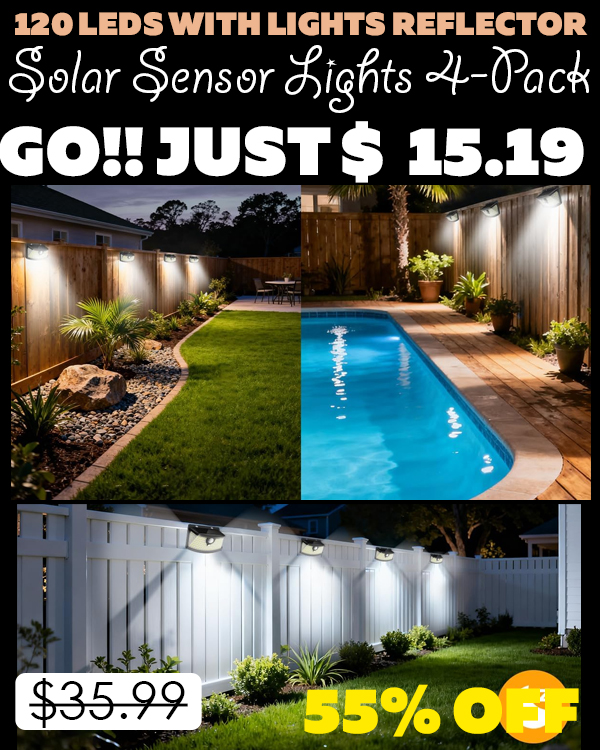 4 solar sensor lights… 120 LEDs each… $15.19 for ALL…