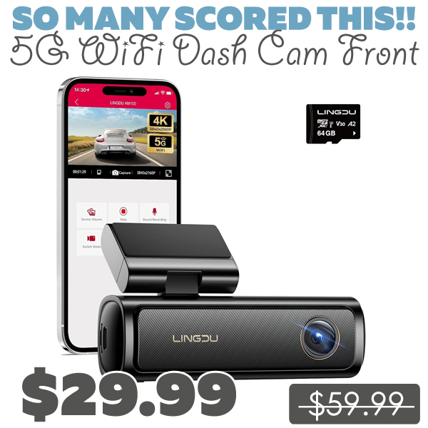 5G WiFi Dash Cam Front Only $29.99 (Regularly $59.99)