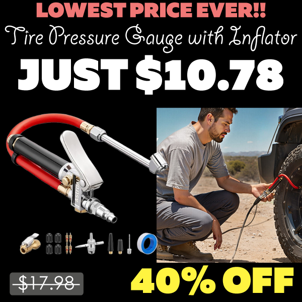 Tire Pressure Gauge with Inflator Only $10.78 (Regularly $17.98)