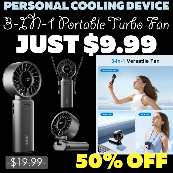 3-IN-1 Portable Turbo Fan Only $9.99 (Regularly $19.99)