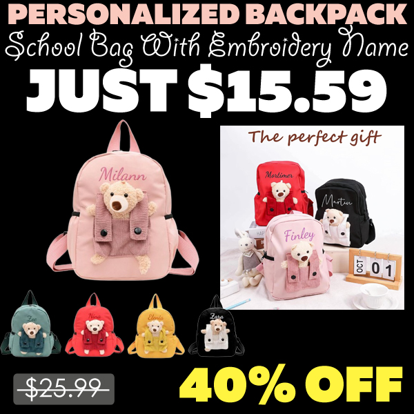 School Bag With Embroidery Name Only $15.59 (Regularly $25.99)
