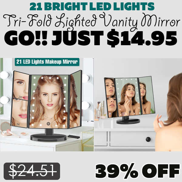 Tri-Fold Lighted Vanity Mirror Only $14.95 (Regularly $24.51)