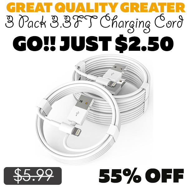 3 Pack 3.3FT Charging Cord Only $2.50 (Regularly $5.99)